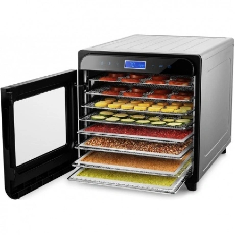 Сушилка для овощей и фруктов Kitfort KT-1934 подходит для сушки овощей, фруктов, ягод, грибов, трав, зелени, корнеплодов, а также хлеба, мяса, рыбы. Мощный нагревательный элемент и вентилятор увеличенного диаметра равномерно распределяют тепло по всему внутреннему пространству. Технология горизонтального обдува помогает уменьшить смешивание запахов. Панель управления позволяет установить температуру и время до 24 часов с шагом 60 минут. В комплекте с Kitfort KT-1934 поставляются 8 металлических сетчатых поддонов, 8 пластиковых сетчатых поддонов и 8 пластиковых сплошных поддонов. Металлический корпус защищает прибор от повреждений, а прозрачное окно на дверце позволяет наблюдать за процессом сушки продуктов.