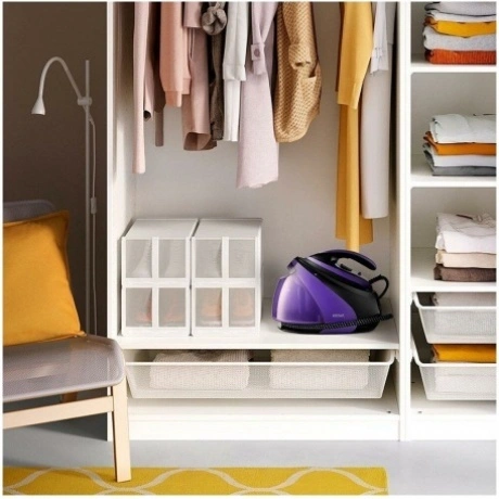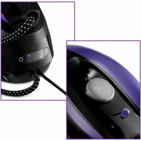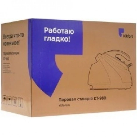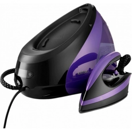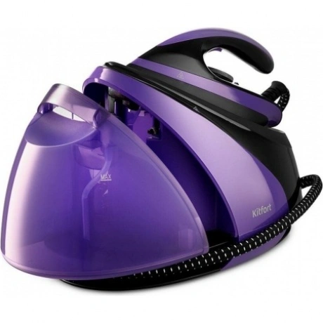 Паровая станция KITFORT КТ-980 выполнена в фиолетовом корпусе и служит одновременно отпаривателем и утюгом. Она содержит утюг и корпус, в который вставляется резервуар для воды объемом 1.3 л. При нагревании воды происходит ее испарение, в результате чего из отверстий подошвы выходит пар со скоростью 120 г/мин. Это позволяет прибору справляться с любыми задачами по уходу за тканями. Такая интенсивность пара позволяет работать с любыми тканями, разглаживая даже глубокие и неподатливые складки. Парогенератор KITFORT КТ-980 мощностью 3000 Вт подходит для вертикального и горизонтального отпаривания. Он поддерживает 5 режимов температуры и 3 режима подачи пара, что обусловлено наличием терморегулятора. Вы сможете настраивать прибор в зависимости от ткани. Керамическая подошва легко скользит по ткани, легко очищается от загрязнений. Система индикации включает в себя индикаторы готовности работы и нагрева. Утюг можно зафиксировать на корпусе станции, установив блокировку.