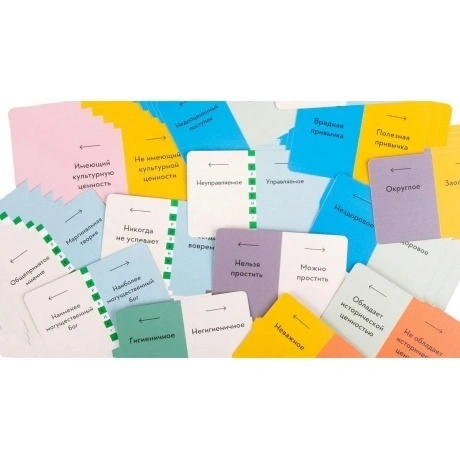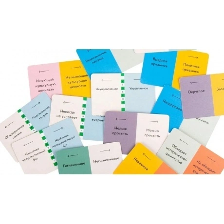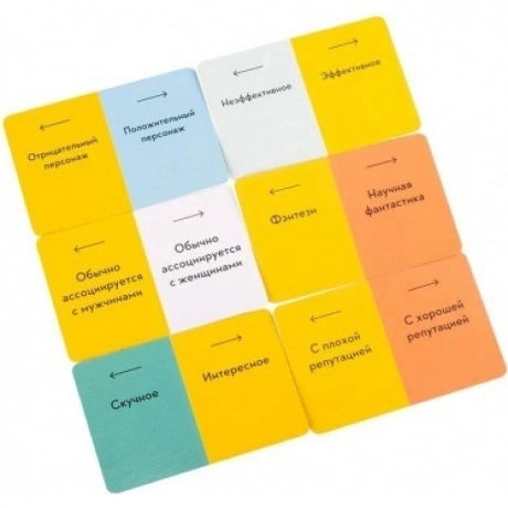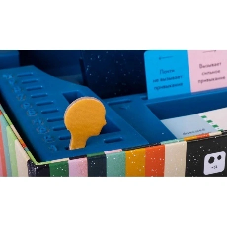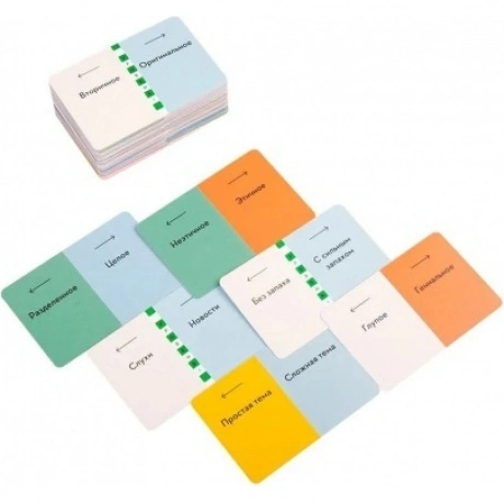 126 двухсторонних карт, 2 маркера подсчёта очков, Уникальный механизм чтения мыслей, Маркер угадывания для неактивной команды, Правила игры