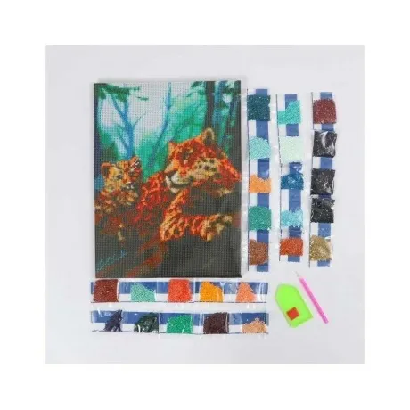 Набор для творества Школа талантов Леопарды 5371223 способствует развитию творческого потенциала, воспитывает усидчивость и терпение. Серия сверкающих картин со стразами позволит Вам создать потрясающий шедевр своими руками. Тканевая основа имеет исключительное клеевое покрытие, которое надёжно удерживает кристаллики. С помощью пинцета вам нужно разложить их по нарисованной схеме с обозначением необходимых цветов, полностью заполнив полотно. Отдельно вас порадует то, что все цвета схемы расположены рядом с рабочей областью холста. А это значит, что схема всегда будет под рукой. Сияющая картина будет радовать и ваших друзей. Она украсит любой интерьер и придаст ему особый шарм. Совершенно особенные вещи, наполненные теплом ваших рук, принесут в дом уют и спокойствие.