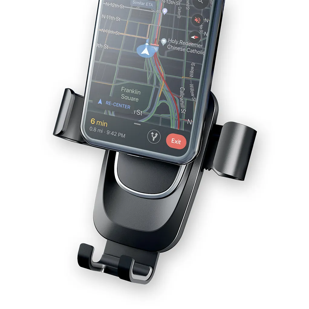 Автомобильный держатель Graviton — простой и незаменимый аксессуар для Вашего телефона: надежно удерживает аппарат на любых кочках, не мешает подключаться к зарядному устройству. Устанавливается в дефлектор, поэтому всегда на виду, но не мешает обзору. Конструкция крепления-защепки подходит практически ко всем типам автомобильных решеток воздуховода. Автоматически фиксирует телефон, аппарату не страшна даже сильная тряска на дороге. Смартфон легко установить в держатель одной рукой, и также легко снять, если нужно быстро ответить на звонок. Ширина раздвижной части держателя — от 64 до 87 миллиметров, поэтому аксессуар подойдет почти всем современным моделям мобильных телефонов.