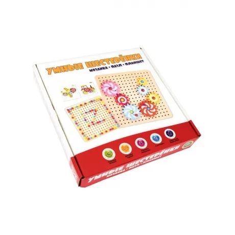 Пазл Анданте Умные шестеренки (мозаика, пазл, планшет) понравится любому малышу. Шестеренки - вызывает большой интерес у детей. Изначально родителям стоит познакомить малыша с новой игрушкой и самим показать принцип работы, чтобы помочь малышу разобраться с основными механическими процессами. В дальнейшем ребята без труда справляются с поставленной задачей, и уже используя свои навыки и фантазию. Планшет – очень многофункциональная игра, где можно поиграть с мозаикой, шестеренками, составлять пазл. На деревянную основу, кладутся карточки, закрепляются элементами мозайки, вставляются шестеренки, которые соединяются и взаимодействуют друг с другом в различных комбинациях. В процессе игры ребенок познакомится с принципами механики крутящихся шестеренок, научится располагать их на доске - основе таким образом, чтобы вращение одной шестеренки заставляло крутиться все остальные, которые с ней соприкасаются. Размер деталей таков, что он позволяет активно задействовать мелкую моторику. Помимо прочего тренируется память, внимание и логическое мышление.