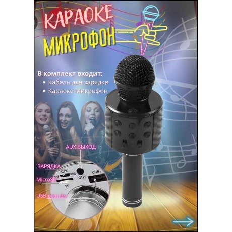 Беспроводной Bluetooth микрофон караоке - отличный инструмент для начинающих вокалистов и средство, чтобы провести приятный вечер в компании друзей. Микрофон можно использовать в качестве MP3-плеера, переносной колонки и даже портативного устройства для экстренной зарядки телефона. Поддерживает воспроизведение аудиофайлов с USB накопителя или карты памяти microSD. Есть возможность регулировки басов, переключения треков, снятия эха.