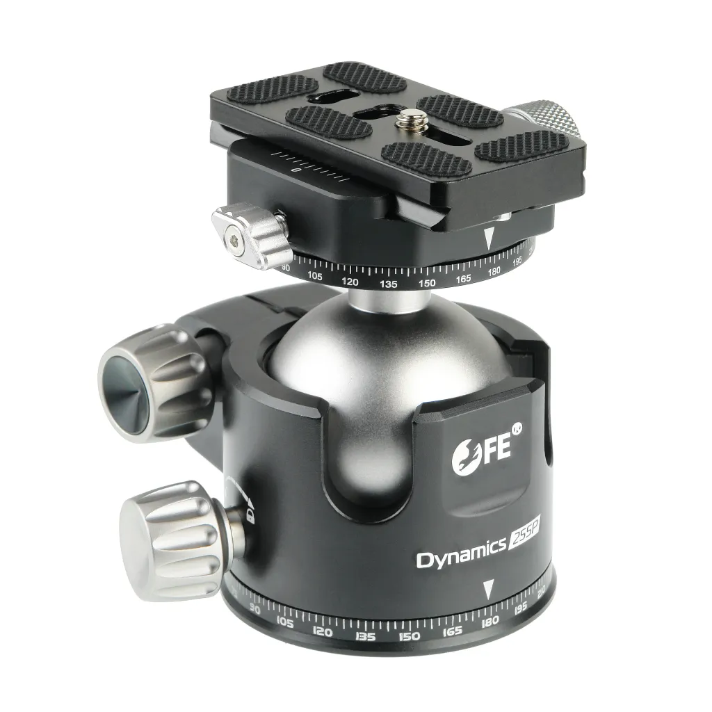 Falcon Eyes Dynamics 255P – шаровая штативная головка с быстросъемной площадкой, соединенной с шаром через поворотную платформу для панорамирования. Головка с низко расположенным шаром диаметром 54 мм предназначена для тяжелых камер с дополнительным оборудованием общим весом до 25 кг. Подходит для использования с зеркальными, беззеркальными или видеокамерами с крепежным отверстием 1/4 дюйм. Особенностью шаровой головки серии Dynamics является наличие отдельных рукояток для регуляции степени демпфирования и стопора для быстрой фиксации шара. Рукоятки регулировки демпфирования вращаются равномерно – даже при усилии зажима шара, близкого к максимальному уровню, перемещение камеры сохраняет плавность движения. А благодаря единому стопору шара во всех направлениях – фиксация быстрая и надежная.