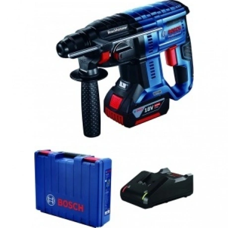 Перфоратор Bosch GBH 180-LI Professional (0611911122) – универсальный помощник для сверления и долбления отверстий в бетоне, камне, кирпиче и других материалах. Установленный в инструменте бесщеточный двигатель характеризуется высокой производительностью, меньшим тепловыделением и стабильностью в течение длительного срока службы. Патрон поддерживает оснастку диаметром до 30 мм с хвостовиком SDS-Plus. Функция реверса предусматривает переключение с правого вращения на левое. Подсветка рабочей зоны повышает удобство выполнения работы в труднодоступных местах. Благодаря эргономичной конструкции с двумя рукоятками обеспечивается комфортное удержание. В комплекте с Bosch GBH 180-LI Professional (0611911122) поставляются аккумулятор с напряжением 18 В, зарядное устройство, ограничитель глубины. Также предусмотрен кейс для удобного хранения перфоратора и всех принадлежностей.