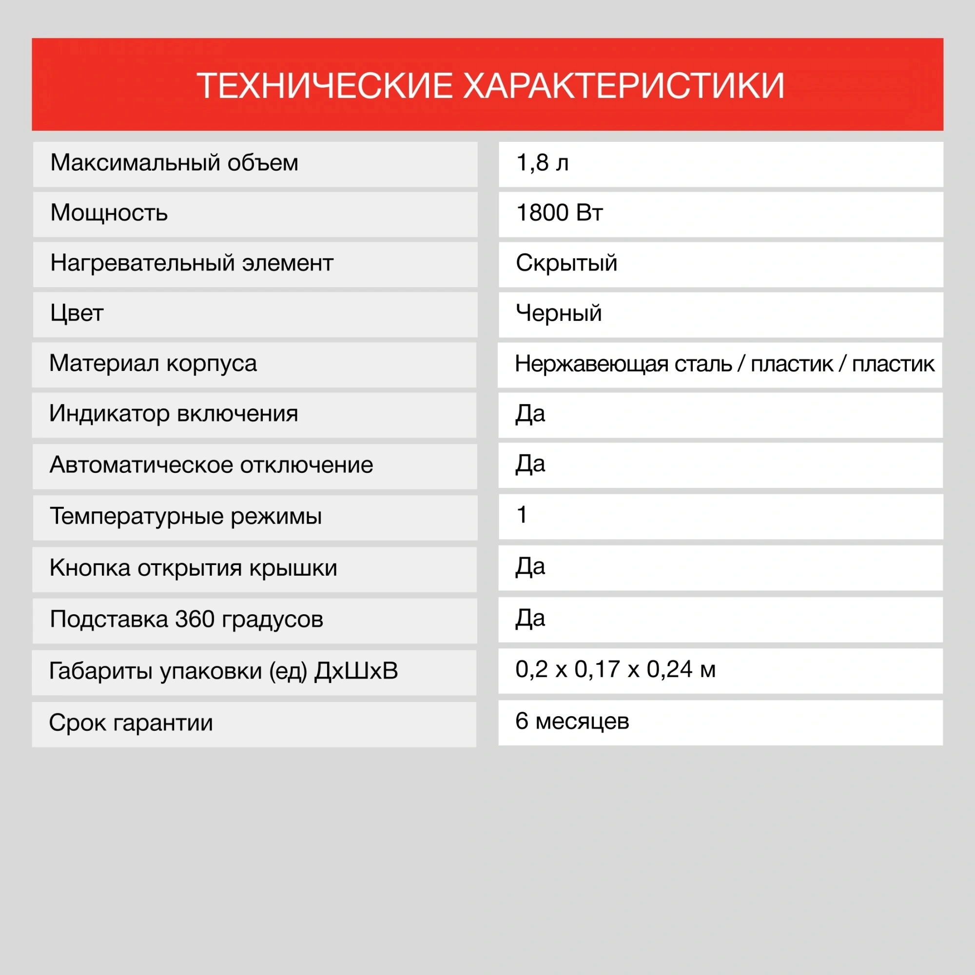Starwind SKS2050 – удобный в использовании чайник, объём которого равен 1,8 литра. Он идеален как для городской квартиры, так и для использования в офисе. Современный электрический чайник обладает мощностью порядка 1,8 кВт. Нагревательный элемент имеет скрытое исполнение. Конструктив носика выполнен таким образом, чтобы не проливать воду. Сам же корпус создан на основе нержавейки и качественного пластика. Присутствует защита от включения без воды, устройство самостоятельно прекращает подачу электричества при закипании жидкости. Данная модель оснащена ручкой, благодаря которой чайник легко держать, поднимать или переносить с одного места на другое.