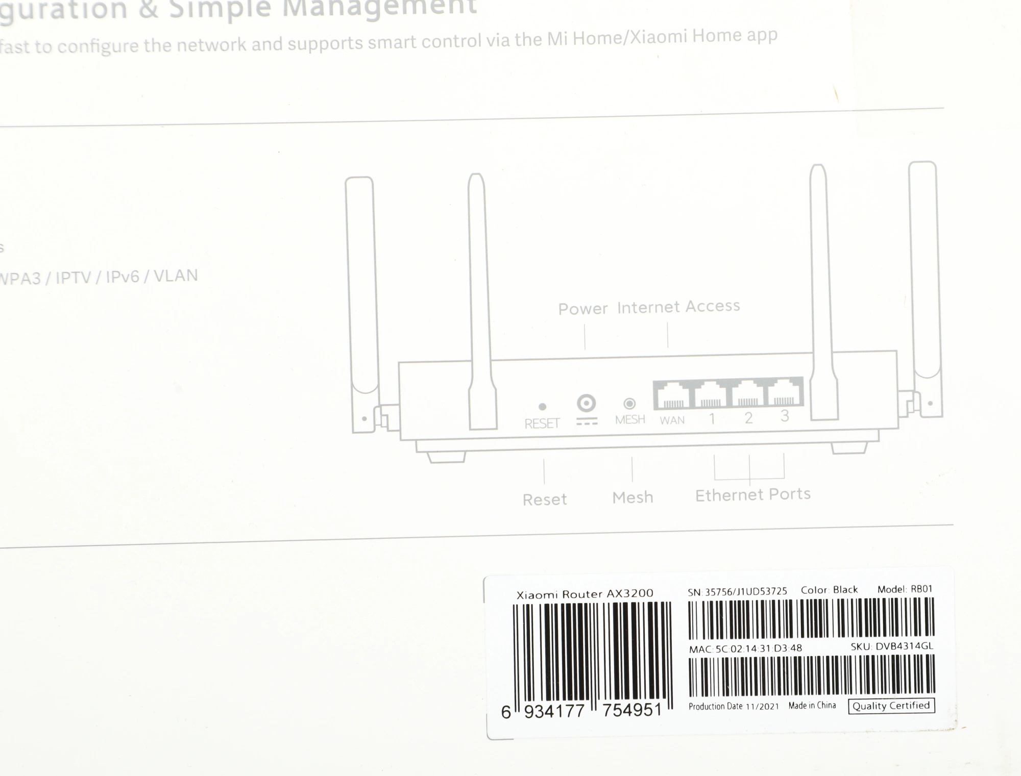 Описание товара Wi-Fi роутер Xiaomi Router AX3200 RB01 (DVB4314GL)