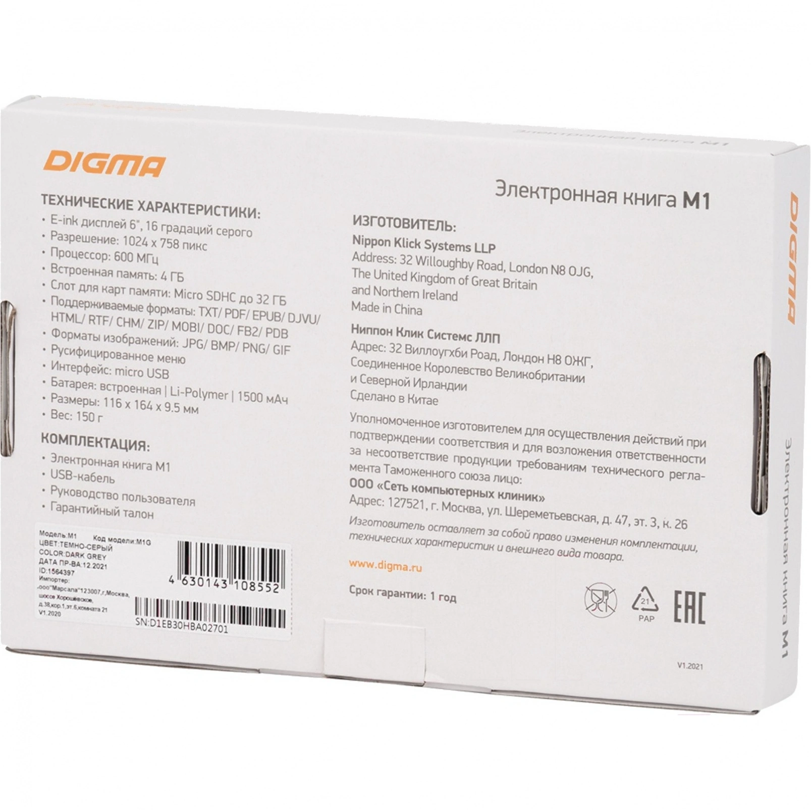 Электронная книга Digma M1 темно-серый в Санкт-Петербурге
