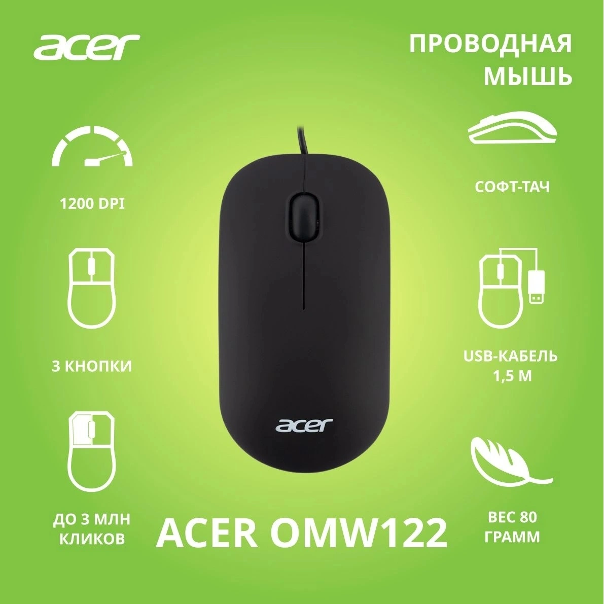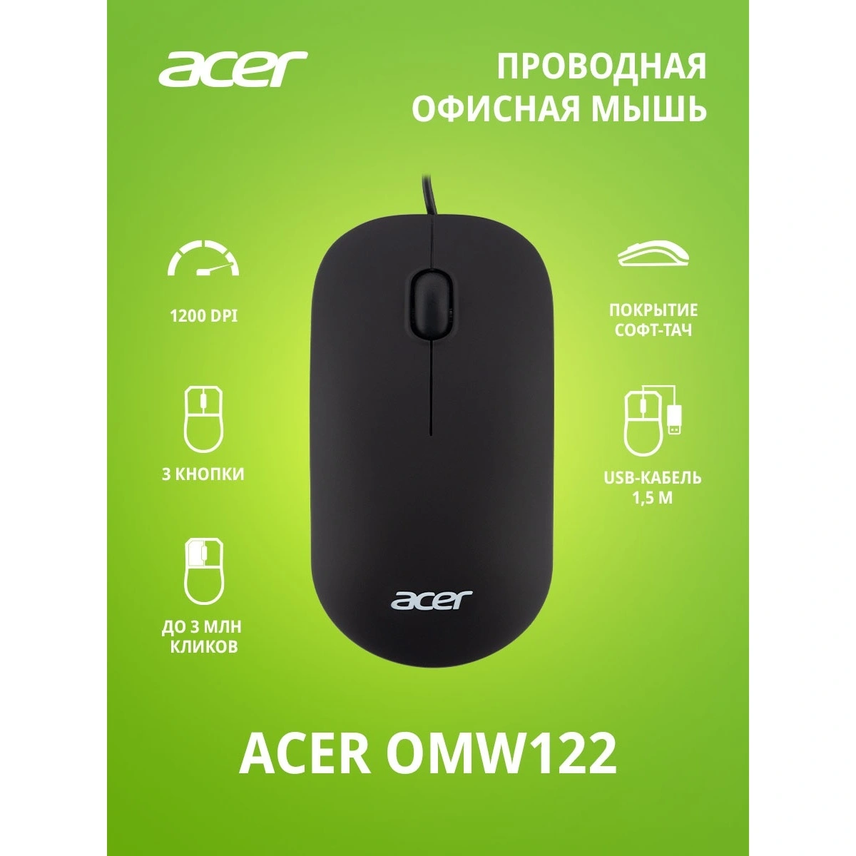 Мышь Acer OMW122 черный (ZL.MCEEE.00V) - характеристики и описание, фото и цены представлены на карточке товара. Для того чтобы купить товар по цене 532 руб., вам надо позвонить по телефону 8(812)426-98-99 в Санкт-Петербурге, или оформить покупку в личном кабинете.