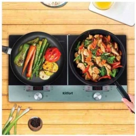 Инфракрасная плита Kitfort KT-155 предназначена для приготовления ваших любимых блюд вкусно и очень быстро! Плита выполнена в пластиковом корпусе с рабочей поверхностью из стеклокерамики, а мощность конфорок достигает 1500 Вт и 2000 Вт соответственно! В отличие от индукционных плит, инфракрасная плита не имеет импульсного режима. Нагрев происходит постоянно даже на самых минимальных мощностях. Индикатор «Горячо» предупредит вас о возможности получения ожога, когда поверхность плиты сильно нагрета.