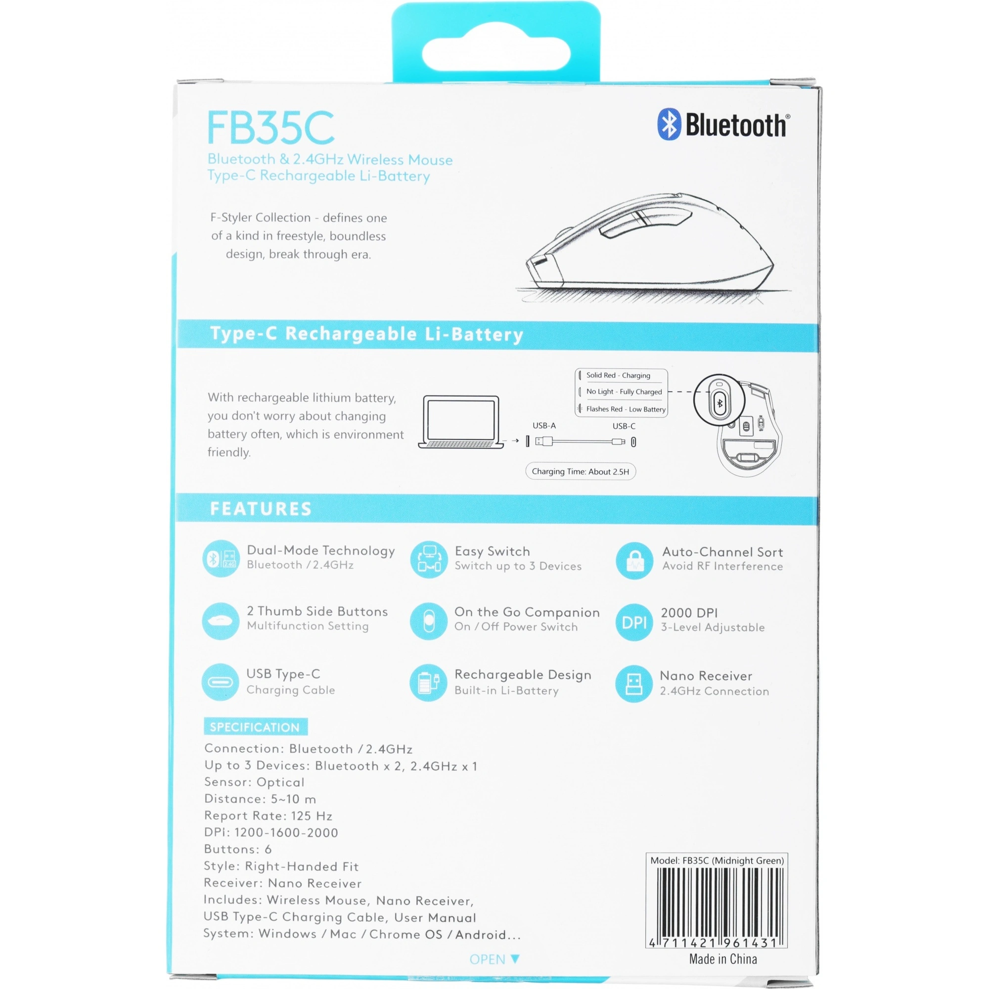 С весом всего 91 г, эта беспроводная мышь легкая и переносная, что делает ее идеальной для использования как в офисе, так и в дороге. Благодаря встроенному аккумулятору вам не придется заботиться о постоянной замене батареек, а радиус действия беспроводной связи до 10 метров обеспечивает свободу перемещений, не привязывая вас к столу.