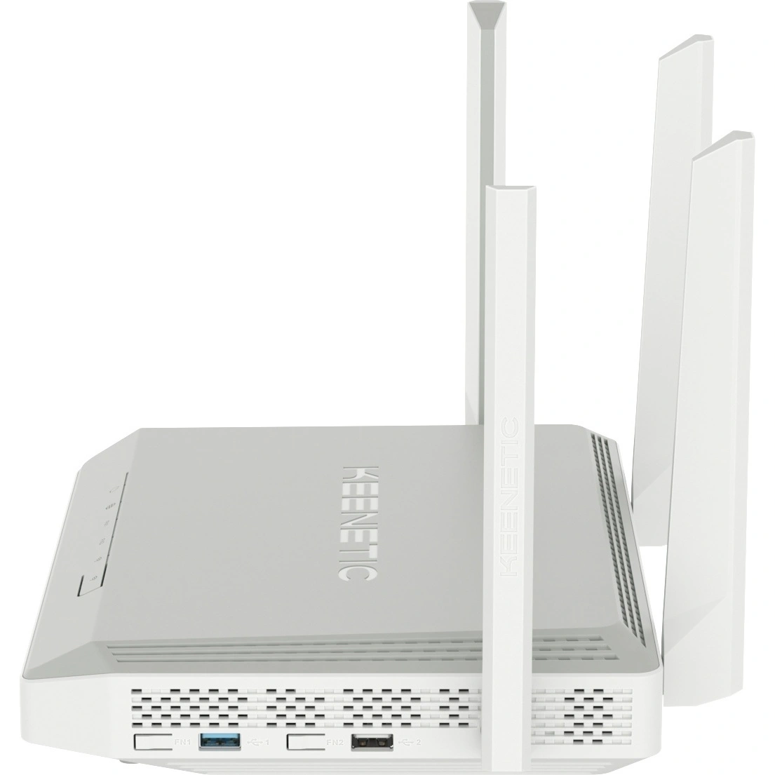 Wi-Fi-роутер Keenetic Peak белого цвета оснащен 2-ядерным процессором, поддерживающим высокую скорость беспроводного и проводного соединения. Благодаря своим техническим параметрам он подходит для развертывания сети в большой квартире, доме или офисе. Роутер поддерживает беспроводное подключение 3G и 4G/LTE (требуется USB модем). Внешние съемные антенны (4 шт.) с усилением в 5 dBi создают бесперебойный сигнал при работе устройства в двух диапазонах (2.4 ГГц, 5 ГГц).