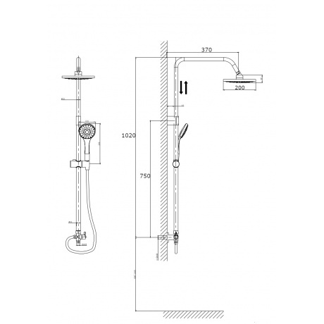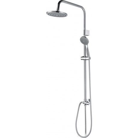 Комплектация: душевая штанга с фиксированной высотой, душевая лейка, тропический душ, держатель душевой лейки поворотный, душевой шланг с латунными гайками, индивидуальный пакет, паспорт, гарантийный талон