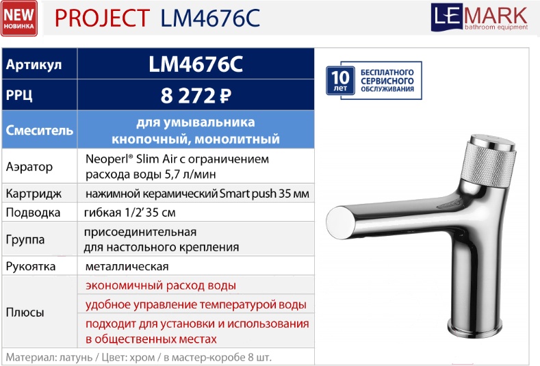 Отзывы о товаре Смеситель для раковины Lemark Project, кнопочный (LM4676C)