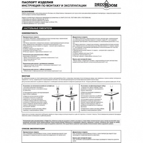 Смеситель для кухни DECOROOM DR72 (DR72021). Комплектация: смеситель, паспорт.