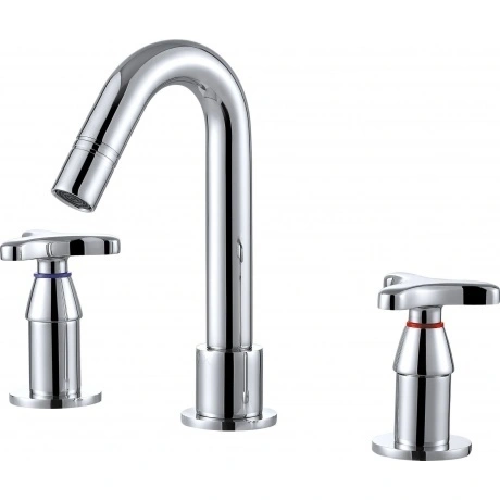 Смеситель для раковины D&K Hessen.Goethe DA1384141 Hessen - консерватизм, доработанный до совершенства. Притягивающий классический внешний вид, для предпочитающих стабильность. Блестящий внешний вид двухручкового смесителя с обновленными ручками привлекает своим внешним видом, послужит прекрасным дополнением классической ванной комнаты. - Бесплатное гарантийное обслуживание - 10 лет - Смесители из латуни высокого качества, безопасны для людей и домашних животных из-за пониженного содержания свинца - Блестящее хромированное покрытие обладает высокими защитными и декоративными свойствами - Протестирован на 500 000 циклов включения, что составляет более 30 лет повседневного использования, семьи из четырёх человек - Аэратор Neoperl экономит воду за счет смешивания с воздухом, струя становится ровнее и мягче, снижая уровень шума - Гибкая подводка 40 см идёт в комплекте для быстрой установки.