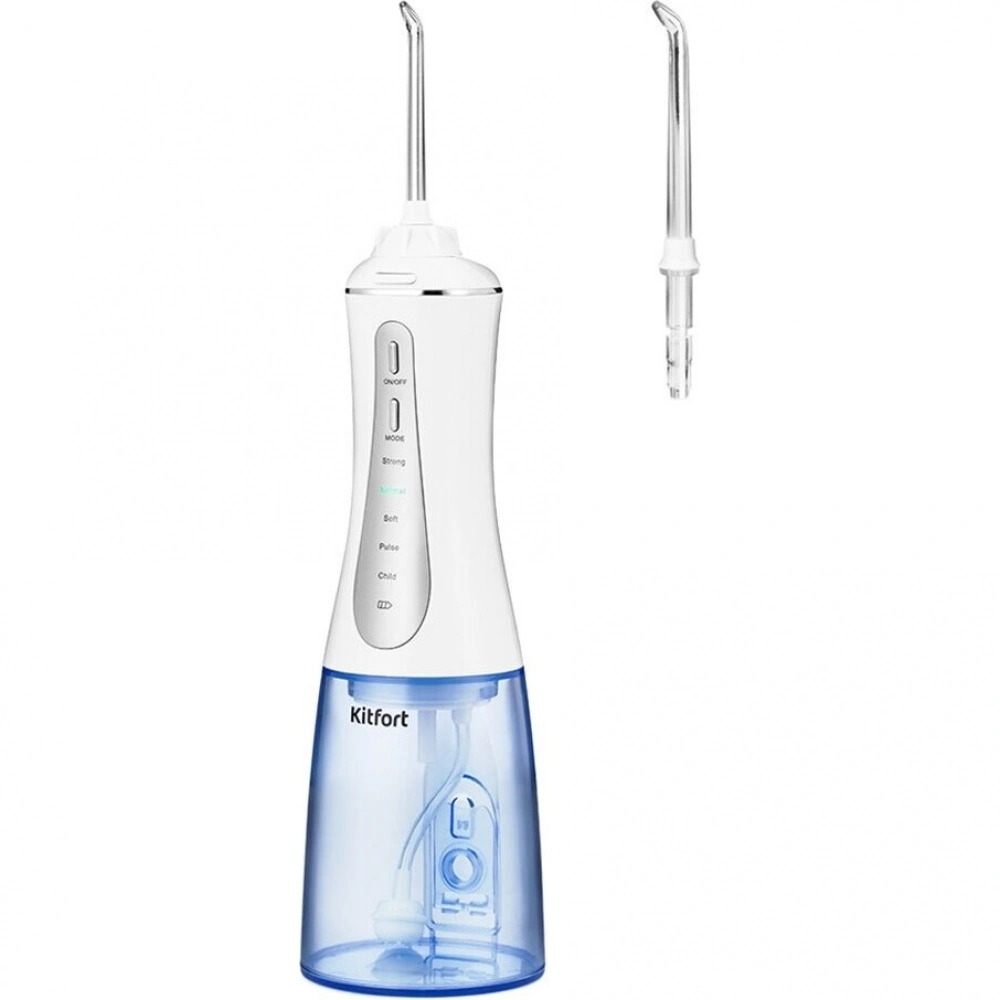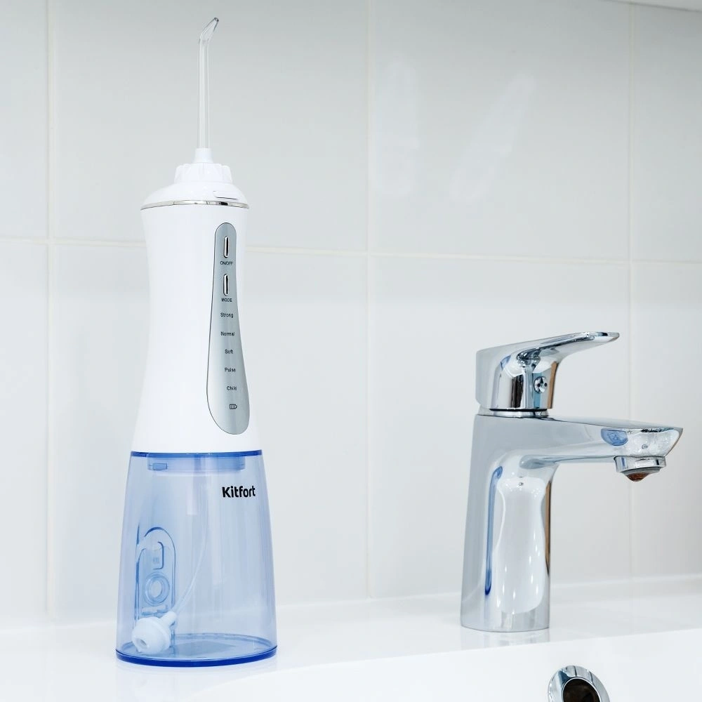 Ирригатор Kitfort КТ-2915 – функциональная модель с двумя сменными насадками, особенно удобная при ношении имплантов или проезов. Такое устройство в разы превосходит эффективность обычной зубной щетки. Вы можете выбрать 5 режимов давления воды в пределах 300-900 кПа.