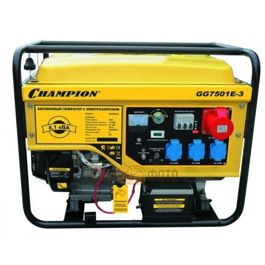 Электрогенератор бензиновый Champion GG7501E-3 - стоимость товара 56398 руб. Описание товара содержит: цены, фото и основные характеристики. Данный товар так же можно заказать по телефону 8(812)426-98-99 в Санкт-Петербурге. В интернет-магазине КотоФото можно оформить заказ с доставкой, либо самостоятельно забрать товар в пункте самовывоза.