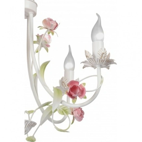 Люстра мощностью 200 Вт выполнена в стиле прованс, флористика. Подойдет для спальни, гостиной, кабинета и любого другого помещения соответствующего оформления. Для изготовления каркаса люстры использован прочный материал - металл. Отличные технические данные и надежные эксплуатационные характеристики будут радовать обладателя этой люстры долгие годы.