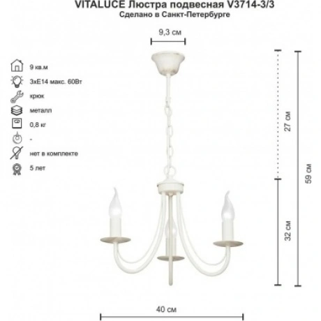 Отзывы о товаре Люстра Vitaluce V3714-3/3, 3xE14 макс. 60Вт