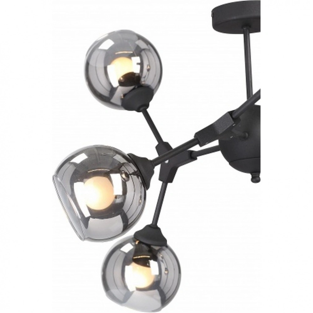 Люстра выполнена из качественных материалов: её надежное основание изготовлено из прочного металла, а плафоны из изящного стекла, что обеспечивает не только долговечность, но и привлекательный внешний вид. Черный цвет каркаса добавляет модели строгости и утонченности, вписываясь в разнообразные стилистические решения вашего интерьера.