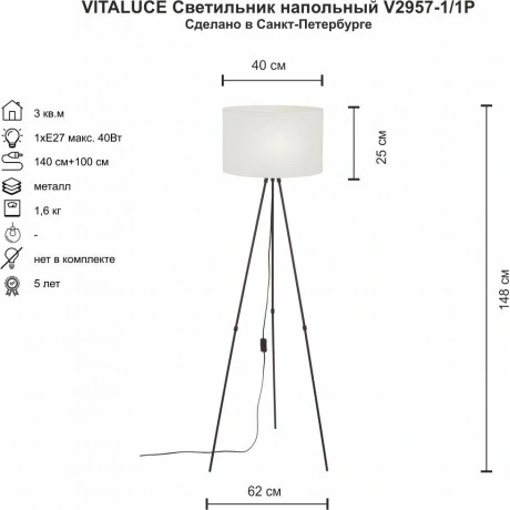 Светильник напольный Vitaluce V2957-1/1P, 1xE27 макс. 40Вт в Санкт-Петербурге