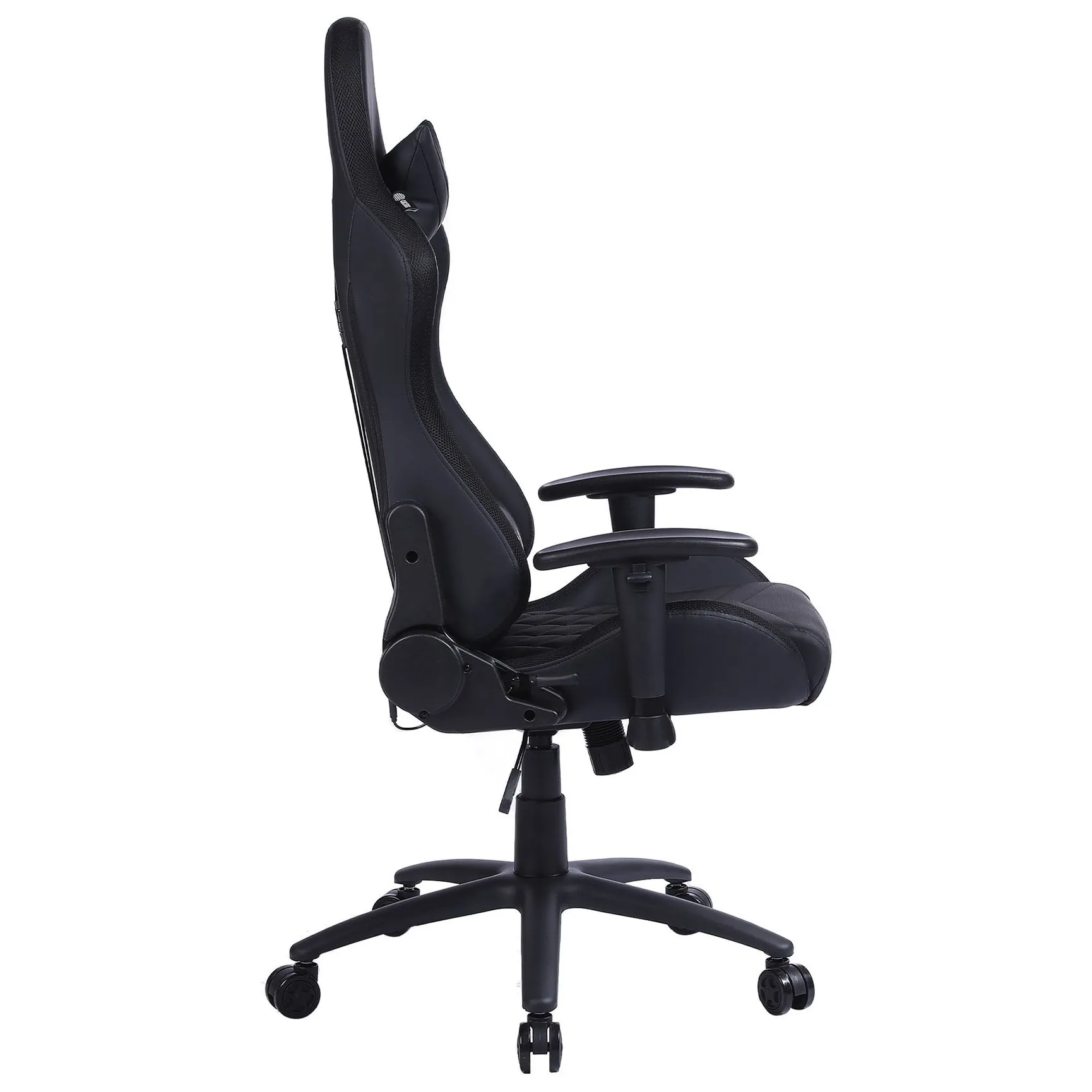 Игровое кресло эргономичной формы с дополнительной поддержкой поясницы и шеи.