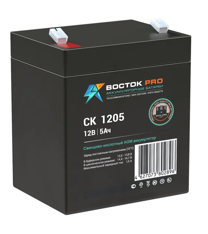 Свинцово-кислотные аккумуляторы ВОСТОК PRO серии CK предназначены для использования в системах бесперебойного питания, резервного энергоснабжения, автономных энергосистемах. Изготовлены по AGM технологии (электролит, абсорбированный в стекловолоконном сепараторе), являются герметизированными и необслуживаемыми, со сроком службы в буферном режиме 10 (от 5 до 26 Ач – 5 лет). Обладают высокими разрядными и эксплуатационными характеристиками благодаря использованию в составе электролита и намазной пасты специальных добавок, препятствующих коррозии и замедляющих процесс старения.