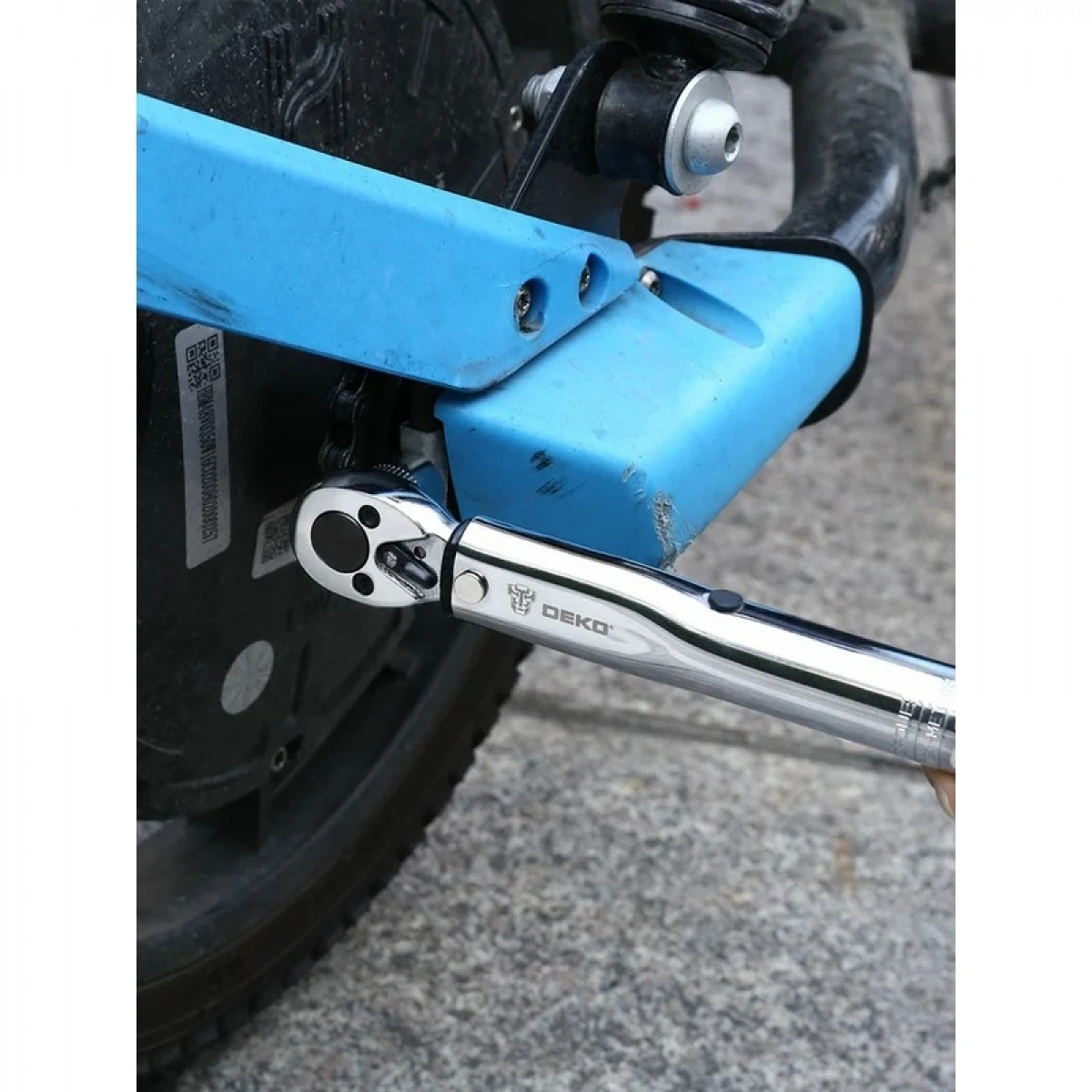 Ключ динамометрический DEKO DKTW01 1/4, 5-25 Нм используется в автомастерских для закручивания резьбовых соединения с нужным крутящим моментом.