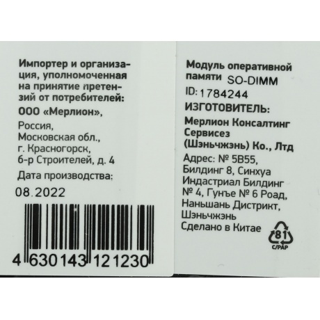 Оперативная память произведена учетом требований современных компьютерных систем, что гарантирует ее универсальность надежность.