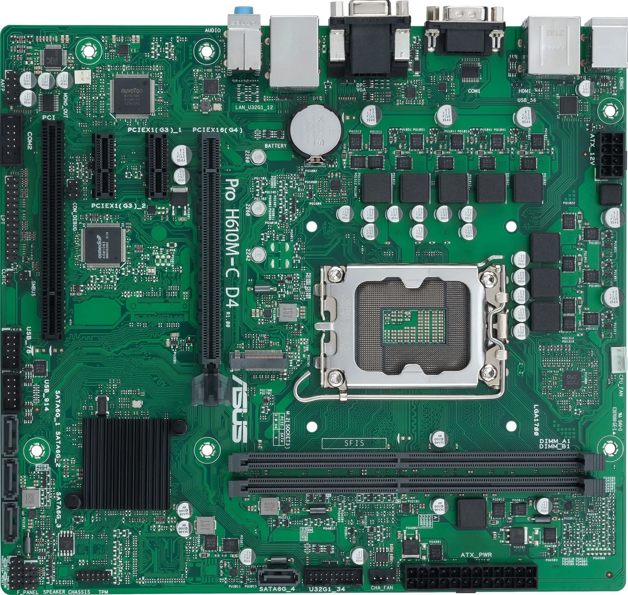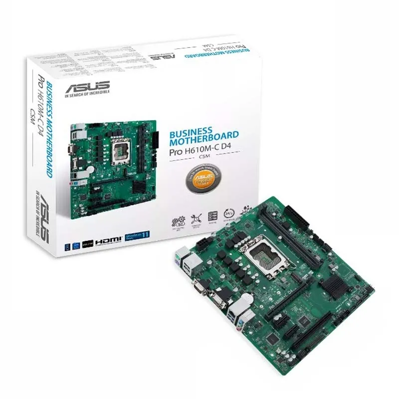 Материнская плата ASUS PRO H610M-C D4-CSM корпоративного уровня является надежной основой для рабочей станции или ПК офисного класса. Она выполнена в формате Micro-ATX и содержит в основе чипсет Intel H610 с сокетом под установку процессоров Intel 12-го поколения. Для подключения комплектующих предлагаются 2 слота DIMM, 1 слот PCI-E x16, 2 слота PCI-E x1, 4 разъема SATA III и 1 разъем M.2.