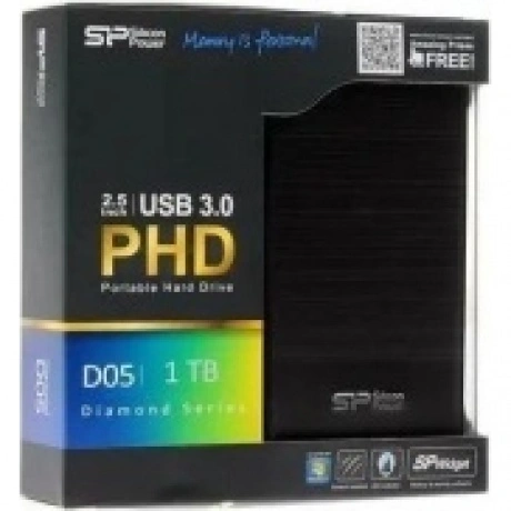 2.5 внешний HDD Silicon Power Diamond D05 под индексом SP010TBPHDD05S3T получил пластиковый корпус с алюминиевыми вставками толщиной всего 13,6 мм. Стильное решение в 2,5-дюймовом формате черного цвета имеет терабайтный объем для хранения данных, а также оснащено USB-интерфейсом третьего поколения с максимально возможной скоростью передачи данных 5 Гбит/с. Портативный HDD-диск обладает всеми качествами накопителя лэптопа – скорость вращения шпинделя на уровне 5400 rpm и 8-мегабайтный буфер обмена. При этом вес HDD Silicon Power Diamond D05 SP010TBPHDD05S3T составляет 205 грамм при ширине в 75,8 мм и длине 125 мм – идеальное сочетание, которое не тянет карман в прямом смысле этого слова.