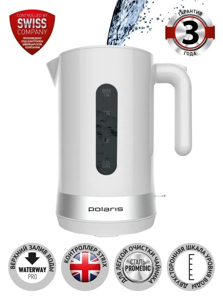 Чайник электрический Polaris PWK 1803C Water Way Pro, белый - характеристики и описание, фото и цены представлены на карточке товара. Для того чтобы купить товар по цене 2385 руб., вам надо позвонить по телефону 8(812)426-98-99 в Санкт-Петербурге, или оформить покупку в личном кабинете.