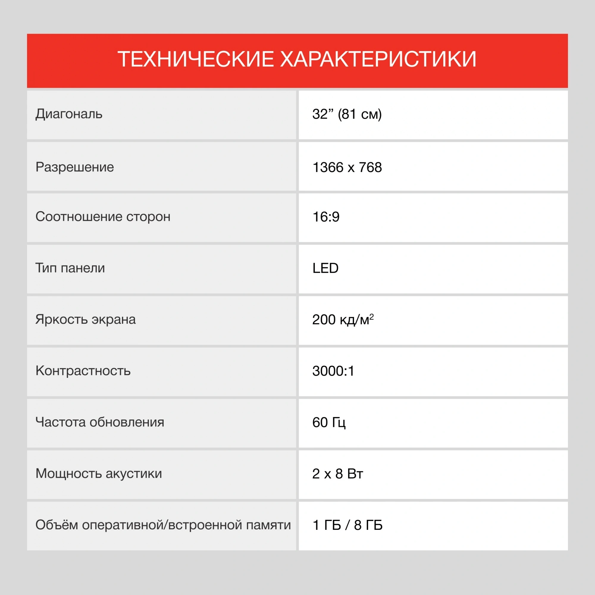 Аудиосистема телевизора мощностью 10 Вт предоставляет чистое и насыщенное звучание, дополняя визуальное восприятие. Частота обновления экрана 60 Гц обеспечивает плавное отображение динамичных сцен, делая просмотр более комфортным.