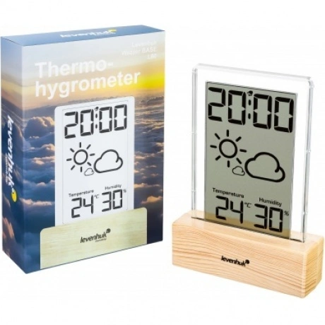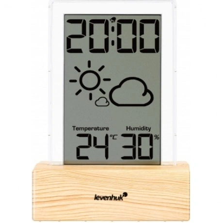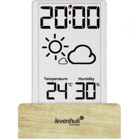 Термогигрометр Levenhuk Wezzer BASE L60 – стильный гаджет с интересным дизайном, измеряющий температуру и влажность в помещении. Он станет хорошим подарком любителю умной техники для дома, пригодится в городской квартире, на даче и в поездках. С ним вы сможете контролировать ключевые метеопараметры, вовремя получать информацию о повышенной влажности или чрезмерной сухости воздуха, а также узнавать прогноз погоды на ближайшее время. Levenhuk Wezzer BASE L60 не требует подключения к сети и прокладки проводов по квартире, так как работает от батарейки. Помимо значений влажности и температуры, на экран прибора выводится одна из пяти иконок прогноза погоды. Верхняя часть экрана отведена под часы, крупные цифры хорошо различимы с большого расстояния. Элегантный прибор отлично заменит собой настольные часы-будильник на прикроватной тумбочке. Сигнал будильника можно отложить одним нажатием кнопки – он зазвучит повторно через 5 минут.