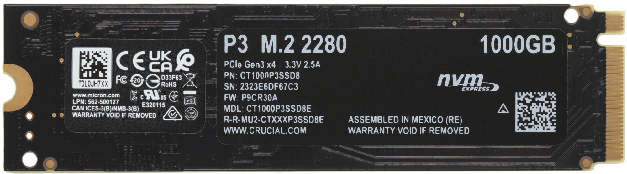 Описание товара Накопитель SSD Crucial P3 3.0 x4 1000Гб (CT1000P3SSD8)