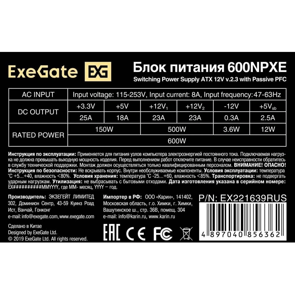Блок питания ExeGate произведен в Китае и представляет собой оптимальное сочетание цены и качества для пользователей, которым необходимо надежное и доступное решение для их персонального компьютера без лишних функций и затрат.