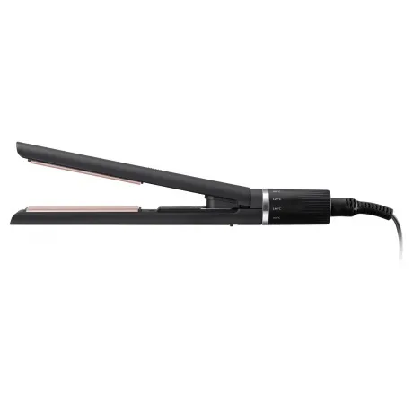 Hyundai H-HS1270 представляет собой эргономичные щипцы, бережно относящиеся к волосам. Благодаря мощности 42 Ватта устройство за считанные мгновения разогревается до максимальной температуры – 230 градусов. Чтобы угодить разным типам волос, устройство оснащено пятью режимами нагрева. Это сделано для того, чтобы не повреждать шевелюру разного вида во время укладки и выпрямления. Режимы переключаются с помощью специального колеса на рукоятке. Там же расположен индикатор включения и готовности к работе. Для безопасности устройство автоматически отключается спустя определенный промежуток времени. Кроме того, в закрытом виде прибор надежно фиксируются, что дополнительно снижает вероятность случайного ожога. Поддержанию здоровья волос способствует материал, из которого выполнены пластины данной модели. Они сделаны из смеси керамики и турмалина, которые не только равномерно прогреваются по всей площади, но и не повреждают волосы при контакте. А турмалин ещё и делает волосы более послушными и податливыми благодаря своим свойствам. Щипцы Hyundai H-HS1270 имеют компактные габаритные размеры, скромный вес и оснащены эргономичной петелькой для вертикального хранения и экономии места. Также в комплекте идёт удобный чехол, чтобы брать их с собой в дорогу. Питается данная модель от сети, для этого в ней предусмотрен длинный двухметровый кабель, чтобы не зависеть от близости розетки. Её корпус выполнен в лаконичном чёрном дизайне, поэтому Hyundai H-HS1270 легко впишется в интерьер даже самой изысканной ванной комнаты.