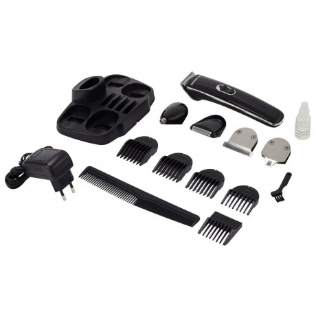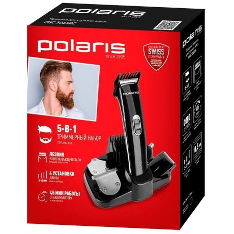 Многофункциональная, надежная и стильная машинка Polaris PHC 3015RC позволит Вам всегда выглядеть ухоженно и аккуратно. Используя это устройство, Вы сможете с комфортом осуществлять контроль над волосяным покровом на голове, лице и на других участках тела. Устройство работает от аккумуляторной батареи типа Ni-Mh на протяжении 45 минут. Подзарядка занимает около 8 часов. Набор удобно хранить и заряжать на специальной подставке. В комплекте триммера — 10 насадок (триммер узкий 30 мм для бороды, триммер широкий 38 мм для стрижки волос, триммер 5 мм для фигурных и детальных стрижек, триммер для удаления волос в носу и ушах, мини – бритва, телескопическая насадка 3-7 мм и 4 гребня для широкого триммера).