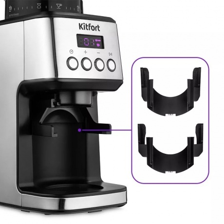 Жерновая кофемолка КТ-790 предназначена для помола кофейных зёрен. Она имеет стальные конические жернова. Кофемолка даёт равномерный помол и позволяет настроить его степень: от мелкого - для эспрессо кофеварки, до крупного - для френч-пресса. Конические жернова - это 2 конуса, один установлен в другой. Внешний конус неподвижный, а внутренний вращается. Зерно, попадая между ними, перемалывается, продвигаясь вниз. Это позволяет быстро перемалывать зёрна, не перегревая их. Регулятором помола можно настроить степень помола: от тонкого - для кофеварки эспрессо, до крупного - для френч-пресса. Устанавливайте нужный помол, поворачивая контейнер для зёрен. Стрелка контейнера для зёрен будет указывать на выбранную степень помола. Кнопка Настройка порции позволяет задать время в секундах для помола одной порции. Минимальное время измельчения одной порции 3 секунды, максимальное 5 секунд. Также кнопкой можно установить количество порций для измельчения от 1 до 10. Комплектацией предусмотрены два держателя для рожка. Один для рожка диаметром 512 мм, второй для рожка диаметром 582 мм. Это в разы упрощает процесс приготовления кофе! Резервуар для кофейных зёрен ёмкостью 320 г и резервуар для молотого кофе ёмкостью 130 г съёмные и комплектуются крышками. Щёточкой можно очищать внутренний и внешний жернова и отверстие для выхода молотого кофе.