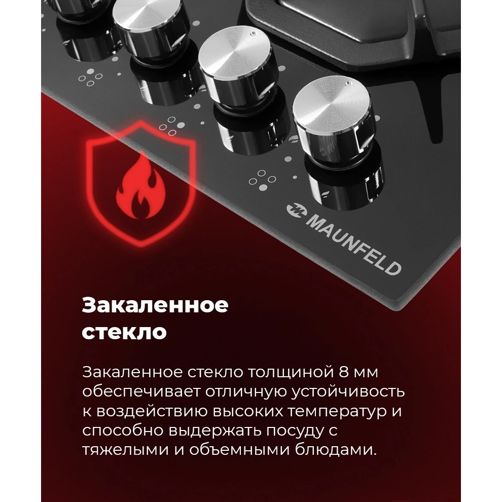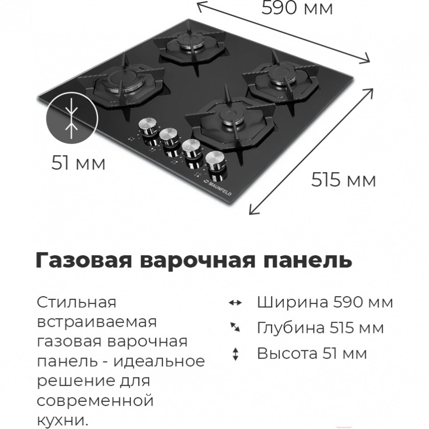 Газовая варочная поверхность MAUNFELD EGHG.64.2CW/G – стильный бытовой прибор с независимым видом установки. Панель из закаленного стекла обладает повышенной износостойкостью и привлекательностью, легко очищается от загрязнений. Комфортной готовке способствуют четыре конфорки с надежным газ-контролем и чугунными решетками. Оборудование MAUNFELD EGHG.64.2CW/G поставляется с комплектом дополнительных форсунок. Для управления системой используются поворотные тумблеры со встроенной активацией электроподжига. Прибор обладает размерами 59x5.1x51.5, не вызывает сложностей в монтаже и эксплуатации.