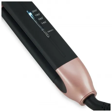 Hyundai H-HS1272 – это удобный и универсальный выпрямитель для волос с эргономичным переключением режимов. Максимальная температура, до которой способен прогреться прибор – 200 градусов. Нагрев происходит за считанные мгновения благодаря материалам, использованным в производстве данной модели, и 40 Ваттам мощности. Температурные режимы разделены на четыре части, чтобы устройство подходило для ухода за разными типами волос. Пластины Hyundai H-HS1272 имеют оптимальный размер и предусмотрительно изготовлены из самых подходящих для контакта с волосами материалов – смеси турмалина и керамики. Они отличаются тем, что быстро и равномерно прогреваются, а также не травмируют волосы при выпрямлении. Дополнительно для поддержания здоровья волос они выполнены по особой технологии, использующей амортизаторы. Благодаря этому пластины становятся плавающими и обеспечивают идеальный уровень давления на шевелюру. Корпус сделан из лаконичного чёрного пластика, который не нагревается во время работы – рукоятка выпрямителя всегда остаётся прохладной. Для дополнительного повышения удобства пользования Hyundai H-HS1272 надежно фиксируется в закрытом виде. Также модель оснащена эргономичной петелькой для хранения выпрямителя в вертикальном положении, а шнур питания крепится к ней на шарнирах, чтобы не перекручиваться и не сковывать свободу действий во время работы. То есть прибор можно держать под любым удобным углом. Для удобства Hyundai H-HS1272 также оснащён индикацией включения и выключения, а также готовности к работе. Кроме того, в выпрямителе предусмотрена функция автоматического отключения, а в комплекте с ним поставляется эргономичный чехол.