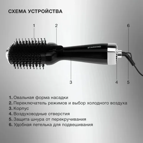 Описание товара Фен-щетка Starwind SHB 7760 1200Вт черный/серебристый