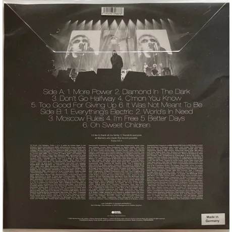 Ограниченное издание. Цветной винил (прозрачный). Треклист: A1. More Power. A2. Diamond In The Dark. A3. Dont Go Halfway. A4. Cmon You Know. A5. Too Good For Giving Up. A6. It Was Not Meant To Be. B1. Everythings Electric. B2. Worlds In Need. B3. Moscow Rules. B4. Im Free. B5. Better Days. B6. Oh Sweet Children.
