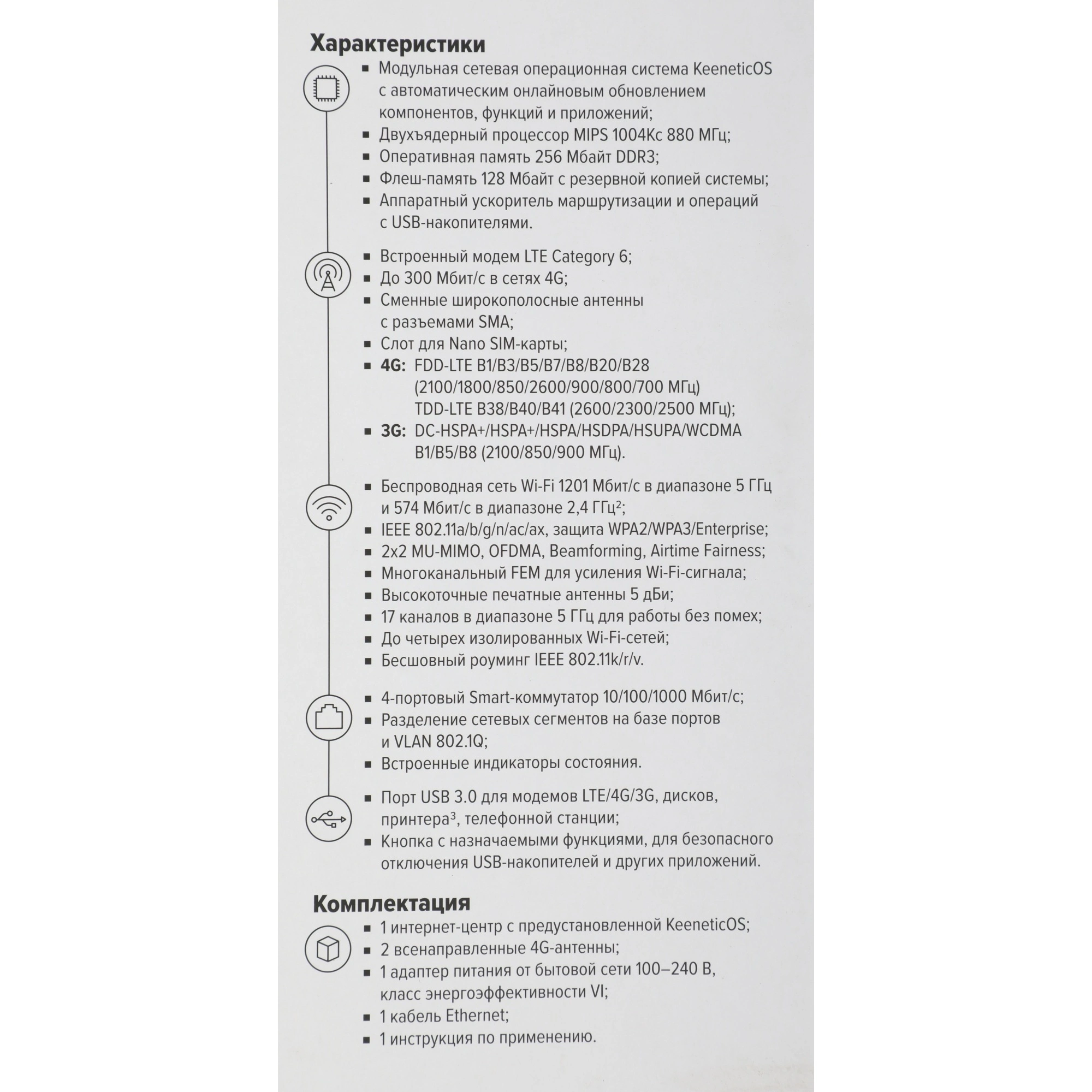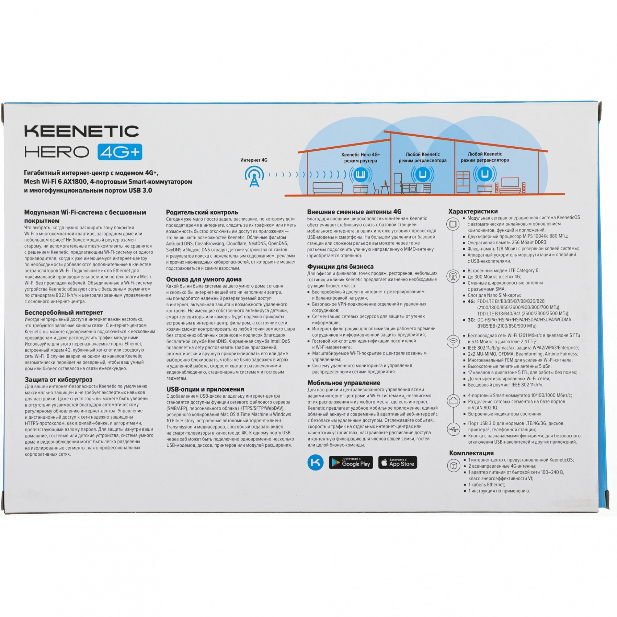 Keenetic Hero 4G+ (KN-2311), Гигабитный интернет-центр с модемом 4G/3G, двухдиапазонным Mesh Wi-Fi AC1300, двухъядерным процессором, 5-портовым Smart-коммутатором и портом USB