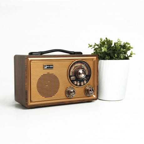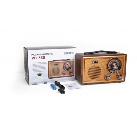 Радиоприемник в ретро стиле отлично дополнит интерьер и удивит своей функциональностью. БЗРП РП-335 достаточно крупный радиоприемник с мягкой удобной ручкой для переноски. Ретро-дизайн приятно удивит покупателя и навеет ностальгией. Подойдет под любой интерьер, благодаря своему дизайну. Находясь на витрине, привлекает внимание покупателей. Радиоприемник обеспечит уверенный прием сигнала в УКВ/СВ/КВ диапазонах. Радиоприемник БЗРП РП-335 оснащен одним динамиком мощностью 5Вт.