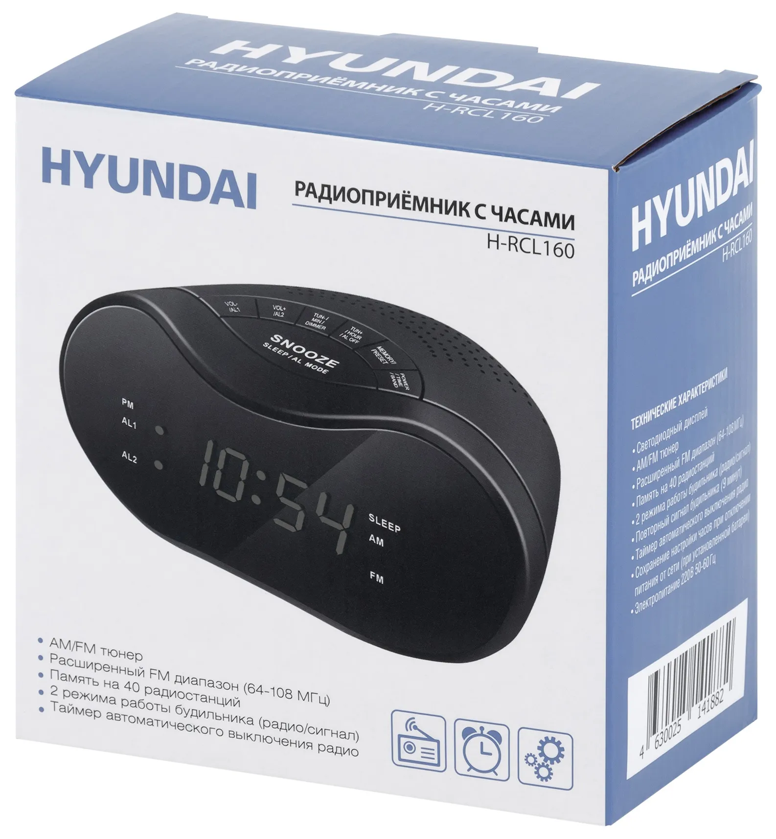 Описание товара Радиобудильник Hyundai H-RCL160 черный