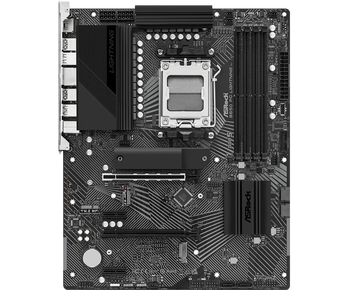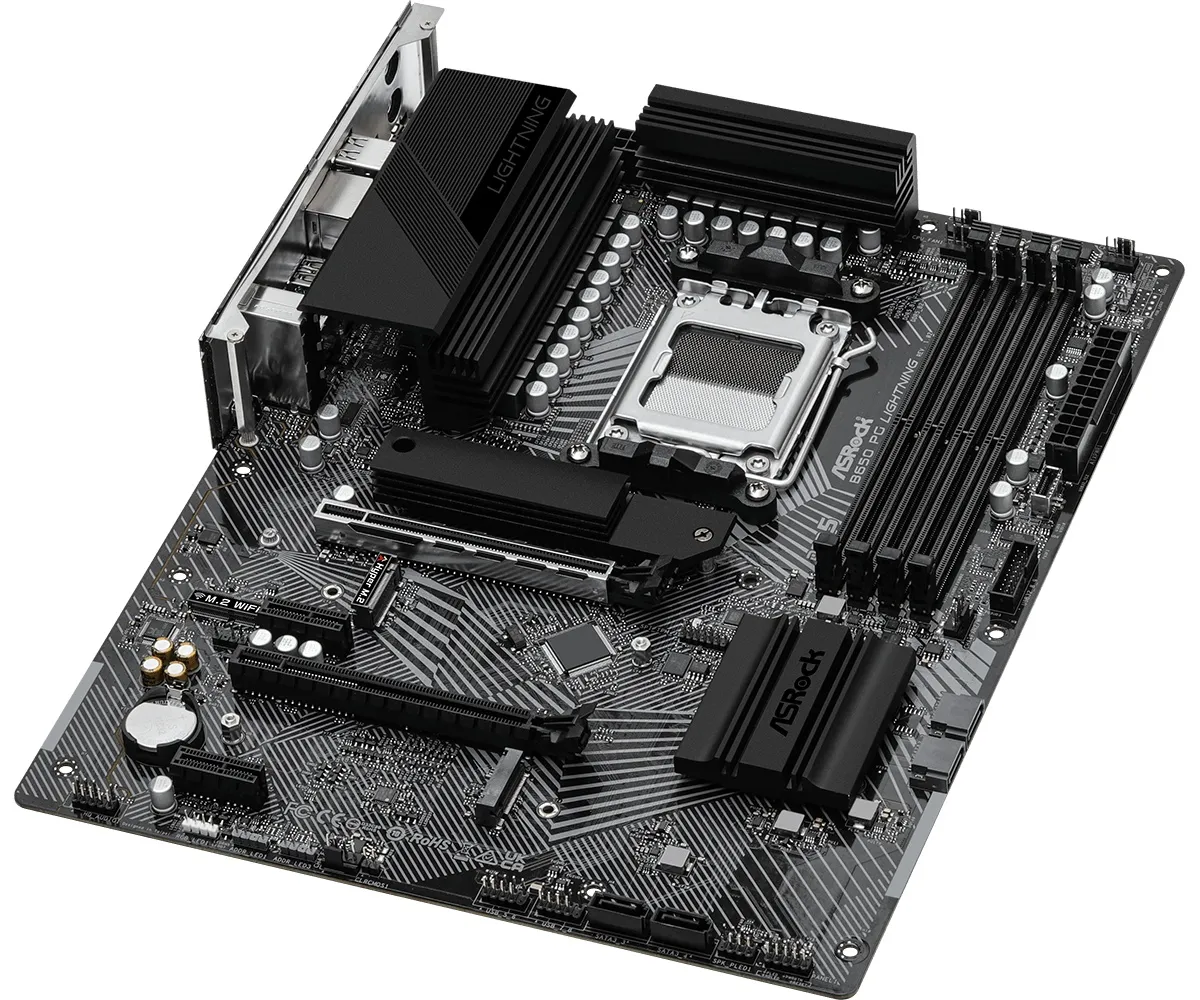 Материнская плата ASRock B650 PG Lightning обладает свойствами производительной и надежной основы для сборки мультимедийного или игрового ПК. Она выполнена в полноразмерном форм-факторе и поддерживает многоядерные процессоры AMD в исполнении AM5. Функционал платы предусматривает установку до четырех модулей DDR5, 2 слота расширения PCI-E x16, 3 разъема M.2 и 4 слота SATA для запоминающих устройств. ASRock B650 PG Lightning оборудована сетевым адаптером с пропускной способностью 2.5 Гбит/с для скоростного и стабильного соединения с Интернетом. На панели ввода/вывода расположены порты USB, видеовыход HDMI, разъемы аудио для подключения различных периферийных устройств. Качественная элементная база с протестированными компонентами гарантирует исключительную надежность. Плата оснащена разъемами для подключения светодиодных лент ARGB.