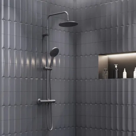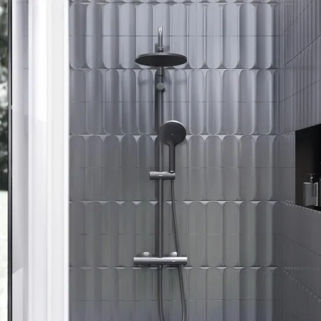 Стильный и лаконичный дизайн душевой системы Jupiter прекрасно подойдет как для классической, так и для современной ванной комнаты. Максимальная безопасность: термостатический картридж 35 мм обеспечивает точную настройку температуры и напора воды. Благодаря телескопической штанге с диапазоном регулировки 400 мм ежедневные процедуры будут одинаково комфортны для людей любого роста. Большое количество форсунок с микроотверстиями, которые распределяют поток мягкими равномерными струями, обеспечит вам расслабляющий эффект настоящего домашнего SPA. Переключайте потоки воды между ручной и тропической лейками плавным поворотом дивертора. Угол наклона тропической лейки можно регулировать. Инновационное PVD-покрытие гарантирует чрезвычайную прочность душевой системы. Матово-черная поверхность не выцветает с годами и устойчива к механическим повреждениям, загрязнениям и отпечаткам пальцев.