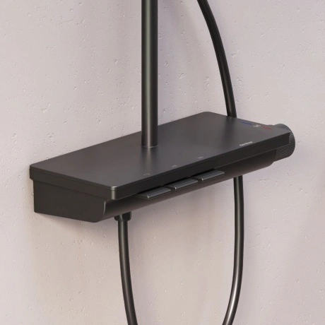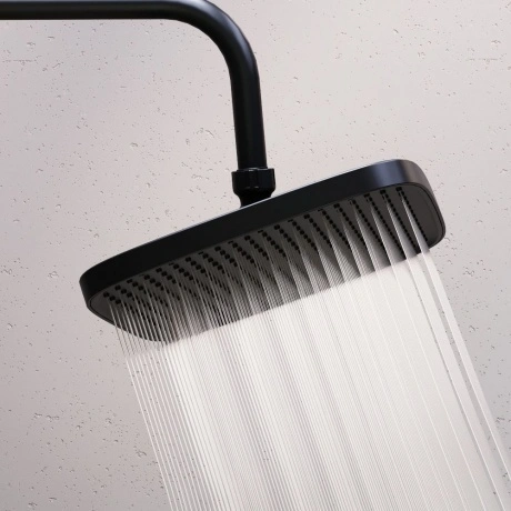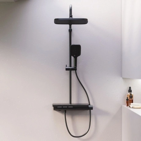Мягкие геометричные формы, трендовое черное покрытие и солидное датское качество – идеальное сочетание для современной ванной комнаты. Простая и минималистичная на первый взгляд, душевая система Gala чрезвычайно функциональна и удовлетворит даже самого искушенного пользователя. Максимальная безопасность: термостатический картридж 35 мм обеспечивает точную настройку температуры и напора воды. Благодаря телескопической штанге с диапазоном регулировки в 400 мм водные процедуры будут одинаково комфортны абсолютно для всех членов семьи. Непревзойдённый комфорт и удобство: благодаря стильной полочке из ударопрочного закаленного стекла, вы можете хранить все необходимые вещи под рукой. Настоящее SPA прямо у вас дома: наслаждайтесь увеличенным размер тропической лейки с регулируемым углом наклона (220 мм) и 3-мя режимами ручного душа. Возможность включения 2-х или 3-х режимов одновременно сделает ваши ежедневные ритуалы незабываемыми. Простота и минимализм во всем: переключайте потоки воды между изливом, ручной и тропической лейкой нажатием всего одной кнопки. Специальное PVD-покрытие гарантирует чрезвычайную прочность душевой системы. Матово-черная поверхность не выцветает с годами и устойчива к механическим повреждениям, загрязнениям и отпечаткам пальцев.